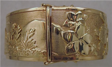 Whether the visual subject matter is that of Maui’s exquisite flowers, the dolphins that grace our island, our regular humpback whale visitors, our on staff artisan has a varied natural and manmade historical background to use for the themes found in their exquisite Hawaii Heirloom Pictorial gold bracelet creations.